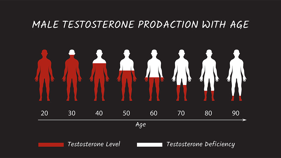 もともとアラフォーの男性は、20代に比べるとテストステロン値が半分近くまで落ちている。
